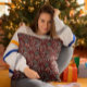 Un coussin à thème de Noël sympa et amusant avec une illustration dessinée à la main des botaniques d'hiver.