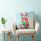 Un chat aux couleurs vibrantes est représenté avec des motifs complexes et un design fantaisiste, avec du rose, du vert et de l'orange. Ses grands yeux et son expression ludique ajoutent au style vivant et imaginatif.