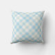 Un Coussin chic ou Cushion, avec un motif plaid en diagonale en bleu ciel et blanc qui coordonne avec les motifs Roses de chien. Photo d'un motif numérique de Judy Adamson, appartenant à la collection Posh & Painterly "Rosy Posy".