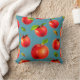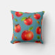 Ce dessin montre des pommes rouges dans un motif sur un arrière - plan bleu.
