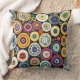 Une coussin à thème circulaire colorée à l'ambiance rétro. Rempli de doodles et de cercles à motifs. Mulitcolor.