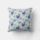 Un coussin avec un motif extensible. Illustré par une paire de cerfs bleus scandinaves portant des foulards rouges. Avec des marquages décoratifs sur le corps. Ainsi qu'un trio d'arbres rouges et bleus de noël avec une étoile au sommet. De beaux flocons de neige parsemés autour.