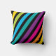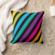 Ce coussin carré est doté d'un motif rayé en diagonale dynamique dans une gamme de couleurs dont le jaune, le bleu, le vert, le rose et l'orange contre un arrière - plan noir. Le design audacieux et le tissu doux en font un accessoire élégant et confortable. Parfait pour ajouter une touche de couleur et une touche moderne à toutes les chambres.