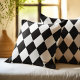 Audacieux oreiller à projectile diamantifère en arlequin noir et blanc.