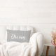 Coussin avec des points rose pastel et bleu motif sur arrière - plan gris.
