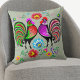 Voici un coussin mignon et coloré qui présente un magnifique design de deux fières coqs debout entre poitrine et poitrine. Un coq est de couleur rouge, vert, violet rose et noir, l'autre rose, rouge et noir. Les images du coq sont encadrées d'images de fleurs de couleur brillante en rouge, or, jaune, bleu et vert. L'image est placée sur un arrière - plan vert sauge complémentaire, et est répétée de l'autre côté du coussin. Très coloré, lumineux et amusant à utiliser toute l'année. Assurez-vous de voir les modèles de cuisine et de salon correspondants dans notre magasin.