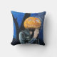 Un oreiller éffrayant à lancer d'Halloween avec l'oeuvre pastel "The Headless Biker". Cette illustration montre un fantôme à la tête de citrouille portant une veste en cuir fume une cigarette sur une nuit froide et sombre d'octobre. OEuvre originale : Pastels sur papier. Copyright Dominic A. White. Tous droits réservés.