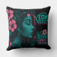 Composición más expresiva y abstracta: rostro femenino con contrastes bicolor, trazos fluidos, manchas y líneas que generan movimiento y profundidad. La flor central actúa como sello botánico de la colección, manteniendo la estética neon teal & pink para una línea uniforme en cojines, sudaderas y pósters.