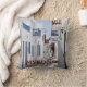 Lancer l'oreiller de 16" x 16" avec l'image d'une aquarelle représentant une ruelle pavée pittoresque sur l'île de Mykonos, une île grecque faisant partie des Cyclades, située entre Tinos, Syros, Paros et Naxos. Bleu derrière.