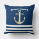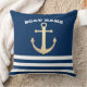 Coussin Nautical, Gold Anchor Navy Blue Striped