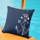 Coussin Navire bleu marine Ancre nautique et monogramme de