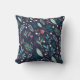 Coussin Navy Blue Rustic Floral Folk Art Pattern Pillow