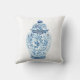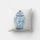 Ce coussin comporte un pot bleu et blanc classique de gingembre de porcelaine basé sur un objet façonné chinois antique. D'une gouache originale/encrez la peinture par l'artiste Anne Harwell.