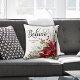 Cet élégant coussin de Noël "Believe" présente un magnifique design floral rouge avec le mot "Believe" dans le script de typographie moderne. Personnalisez-le avec votre nom et votre date.