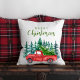 Beau coussin de Noël. Au centre, un beau cabine se distingue dans une forêt enneigée et un joyeux panneau de Noël au fond dans une typographie élégante et festive. Au fond du coussin, un espace est réservé à la personnalisation du nom de famille. Il peut être dans une belle police, comme si c'était un cadeau spécial pour cette famille particulière. En outre, vous pouvez le customiser très facilement en modifiant le modèle avec le nom et l'année que vous voulez.