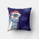 Coussin Noël du manchot de monogramme bleu