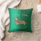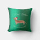 Un doxie fauve avec un chapeau de Père Noël et un nom personnalisé sur fond vert