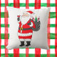Ajoutez à votre maison une bonne humeur de vacances avec cet oreiller festif de Noël avec Père Noël tenant un verre de vin rouge et un sac rempli de bouteilles de vin (deux enveloppés et un non emballé). Parfait pour la décoration de vacances, les accents de saison douillets, ou comme un cadeau amusant pour les amateurs de vin. Une façon élégante d'apporter l'esprit de Noël à votre salon, espace bar ou espace d'invités.