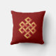 Noeud sans fin doré sur maroon Throw Pillow. Le noeud éternel symbolise la sagesse et la compassion. Ce symbole de noeud signifie que nous sommes tous interconnectés.