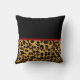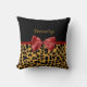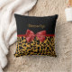 Un coussin à la mode de motif d'empreinte de léopard de noir et d'or avec un arc rouge mignon de ruban enveloppé comme un présent. Personnalisez en ajoutant votre nom. Perfectionnez le présent pour la femme chic et élégante !