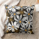 Coussin caractéristique en noir, blanc, jaune et or abstrait marguerite motif floral. Idéal pour toute décoration de maison design, moderne, élégant, minimaliste, décoration botanique rustique maison.