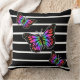 Couleur rose rouge rouge bleu vert noir et blanc rayé moderne lancer oreiller.