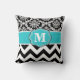 Montrez votre style personnel d'une manière d'amusement avec ces sarcelle d'hiver et coussin noir de monogramme de damassé et d'impression de chevron.