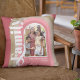Ajoutez une touche de charme rétro à votre espace de vie avec notre coussin personnalisé. Cette pièce unique, avec en toile de fond un arc-en-ciel rose vintage boho, est le parfait mélange de nostalgie et de confort. Imprimé avec le mot "famille" en blanc gras, et conçu pour vous d'incorporer votre propre mémoire chère à travers une photo remplaçable. Personnalisez-le davantage avec votre nom et l'année qui vous tient à coeur. Ce n'est pas seulement un coussin - c'est un gardien qui raconte votre histoire.