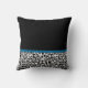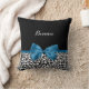 Personnalisez en ajoutant le nom de votre ado fille à ce carré motif empreinte de léopard noir et blanc tendance jetez un oreiller avec un ruban bleu cobalt classique élégant attaché dans un joli arc girly. Image imprimée plate, pas le ruban réel.