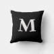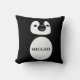 Coussin Nom de monogramme de manchot mignon en noir et bla