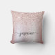 Oreiller personnalisé avec monogramme en écriture script nom personnalisé métallisé rose gold pailleté Glamour Féminin. Ces créations présentent votre prénom dans un joli style de lettrage manuscrit avec une typographie de signature à queue en arabesque (ou calligraphie) sur un fond de feuille métallisée rose gold fausse sur fond rose blush avec une bordure pailletée à l'éclat glamour. Celles-ci sont faciles à personnaliser. Cadeau de pendaison de crémaillère élégant et féminin, également pour un anniversaire, la fête des mères, un mariage, une fête d'anniversaire pour les 16 ans, une douche de mariée, une baby shower, pour un diplôme et c'est pour la fille qui aime les choses uniques et élégantes avec une touche d'éclat.