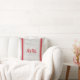 Toile en fausse toile moderne et rustique avec bandes de sacs à grains rouges ou bleus et nom personnalisé. Pourrait facilement compléter n'importe quel style de décoration maison tendance, chambre garçon ou adolescent