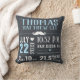 Personnalisez ce petit coussin chic de stat de naissance d'homme avec le DOB de votre bébé, poids, longueur, et d'autres détails de naissance facilement et pressent rapidement, simplement le customiser il bouton pour réarranger plus loin, composent le style et le placement du texte. Décor parfait de crèche. Fait l'idée unique et mémorable de cadeau pour de nouveaux parents. (c) Le STUDIO HEUREUX de CAT