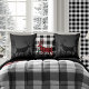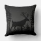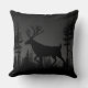 Un coussin décoratif présentant la silhouette noire d'un grand cerf à cornes dans une forêt tranquille de pins, avec différents fonds colorés. Voyez-les tous dans la Collection.