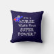 "Je suis une infirmière. Quel est ton super pouvoir ?" oreiller à jetons conçu sur mesure.