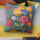 Coussin Oeillets rose jaune sur bleu Joyeux anniversaire