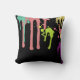 Coussin noir avec les taches et les égouttements multiples de peinture sur l'avant et le dos