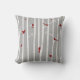 Coussin Oiseaux dans le gris blanc rouge d'arbres de