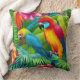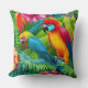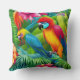 Coussin Oiseaux de perroquets Tropical Palmiers bleus vert