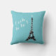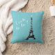 La Tour Eiffel, recouverte de belles lumières scintillantes, et le dicton ludique et amusant Oooh la !, orne cet aqua, coussin turquoise, parfait pour une chambre à coucher avec une décoration inspirée de Paris.