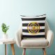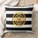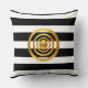 Elégant oreiller à jetons noir et blanc. Point d'or entouré de trois cercles d'or sur rayures noir et blanc.