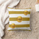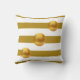 Elégant oreiller à rayures or et blanc avec trois grands points d'or.
