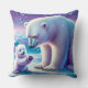 Plutôt bleu et blanc, un ours polaire avec son petit passe un moment spécial sur la glace. Coussin décoratif.