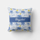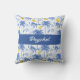 Coussin de décoration Monogramme Palmier Toile Bleu Citrons . Apportez une touche de charme côtier tropical à votre décoration intérieure avec ce joli coussin de décoration présentant un fond rayé bleu clair orné de palmiers bleus esquissés et de citrons jaunes vibrants. Lettre cursive blanche personnalisable, pour votre nom, ce qui en fait un coussin élégant et personnalisé pour n'importe quelle maison.