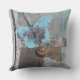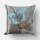 Papillon mixte d'art sur l'oreiller à lancer. Des bleus et des crèmes doux avec un papillon et des oeuvres d'art du coeur estampillées de rêve. Conception de Jenn's Emporium.