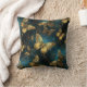 Un élégant oreiller à jetons avec des papillons motif dans des teintes dorées scintillantes et des bleus brillants.