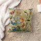 Décorez votre maison avec cet oreiller vintage à jetons avec des papillons botaniques anciens, des oiseaux et des fleurs aux couleurs orange, rouge, bleu, vert, rose, noir et marron sur un élégant motif damassé de couleur or. Conçu par © Tim Coffey.