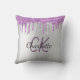 Un arrière - plan à l'aspect métallique faux argenté décoré de gouttes de parties scintillant violet et faux argent, la peinture goutte à goutte. Personnalisez et ajoutez un nom, vos initiales monographiques. Le nom est écrit avec un script de style écrit à la main.