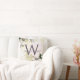 Un mariage personnalisé. Ce magnifique et élégant coussin de peinture à l'huile numérique présente une peinture à l'huile réelle sur un arrière - plan de toile, qui a été soigneusement numérisé, et agrémenté d'art au charbon de bois aussi. Deux éléments de rose blanche et de feuillage encadrent l'initiale classique en monogramme violet dusky, qui présente les prénoms du couple écrits sur le monogramme dans un magnifique script de calligraphie, avec la date mariage ci-dessous. Le design est le même à l'avant et à l'arrière. Fait un grand cadeau pour les jeunes mariés. Idéal pour votre chambre, votre chaise préférée, un ajout décoratif formel à votre salon, ou juste pour un peu de décoration amusante dans votre chambre familiale. Les couleurs de tous les champs de texte peuvent être modifiées à votre gré.