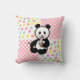 Coussin adorable de bande dessinée de bébé de panda dans le ton rose. Ce panda adorable lèche la crème glacée délicieuse ! ! Pour des fans et des enfants de panda ! Bande dessinée heureuse et mignonne de panda créée par Naomi Ochiai du Japon. Guingan rose et motif minuscule de patchwork de fleurs. Vous pouvez ajouter le texte.